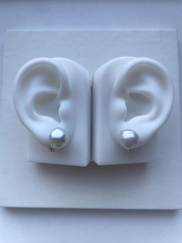 白蝶バロックパールのイヤリング。 約13mmと存在感のある大粒サイズで、耳もとに上品な華やかさを添えます。 自然の力で生まれるバロックパールならではの、ひとつひとつ異なるフォルムとテリが魅力。 角度によってやわらかく表情を変え、凛とした美しさを放ちます。 金具部分はK14ホワイトゴールド製。 シンプルながらも印象的な一品です。 真珠:白蝶真珠(バロック) 真珠サイズ:13mm 金具:K14WG