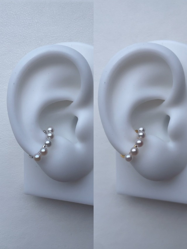 やさしく輝く5粒の淡水パールの片耳用イヤーカフです。 ピアスホールのない方もお使いいただけます。 金具にはシルバーを使用し、肌馴染みもよく、普段使いにもおすすめです。 耳の形状により、フィット感や着用位置に多少の違いが出ることがあります。 ご参考までご覧ください。 真珠サイズ:3.5mm × 5粒 イヤーカフ素材:シルバー イヤーカフサイズ:約2.4cm × 約1.6cm 商品画像はイメージです。真珠の特性上、若干の色味の違いがございます。真珠は生きている貝から生まれる宝石です。そのため無傷のものはほとんどありません。少しの傷などがある場合がありますが、それよりも当店は照り、光沢、輝きを1番に重視して選別し商品作成しております。予めご了承くださいませ。