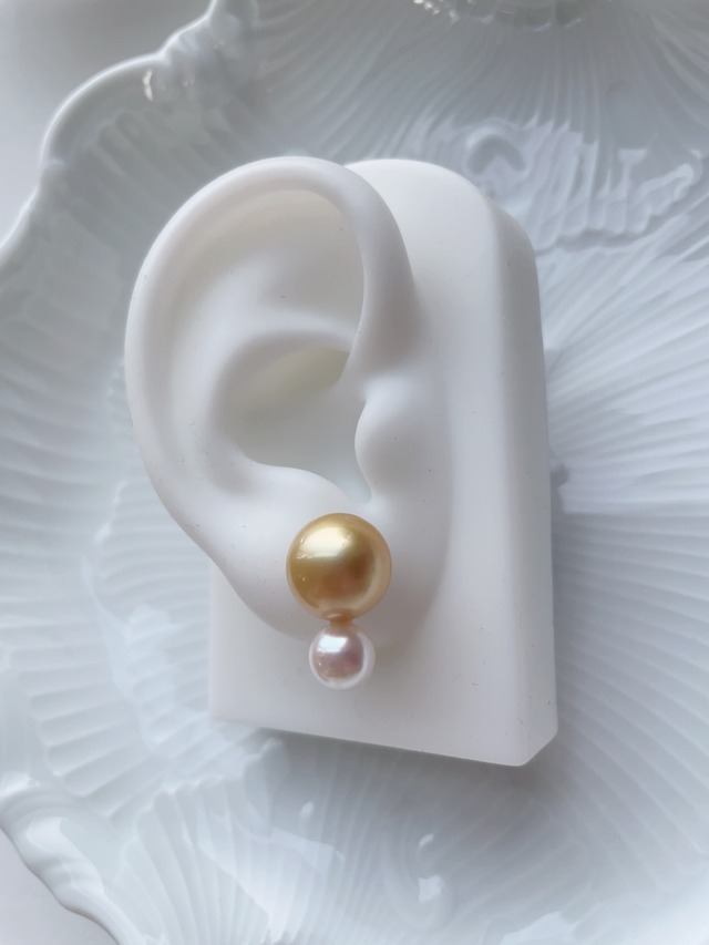 パッと目を惹く、白蝶真珠とアコヤ真珠のスタッドピアス。 大粒の白蝶真珠の華やかさに、アコヤ真珠が愛らしさを添えるデザインです。 耳元に特別感をプラスしてくれます。 真珠:白蝶真珠/アコヤ真珠 真珠サイズ:7-12mm ピアス金具:K14WG