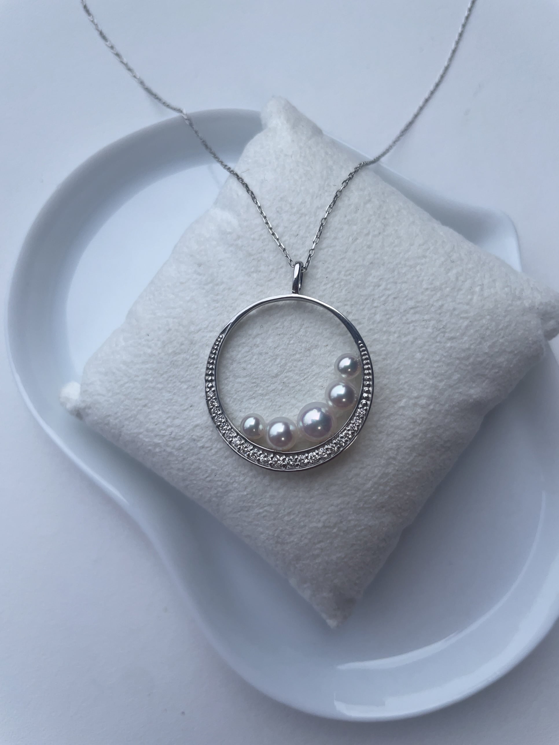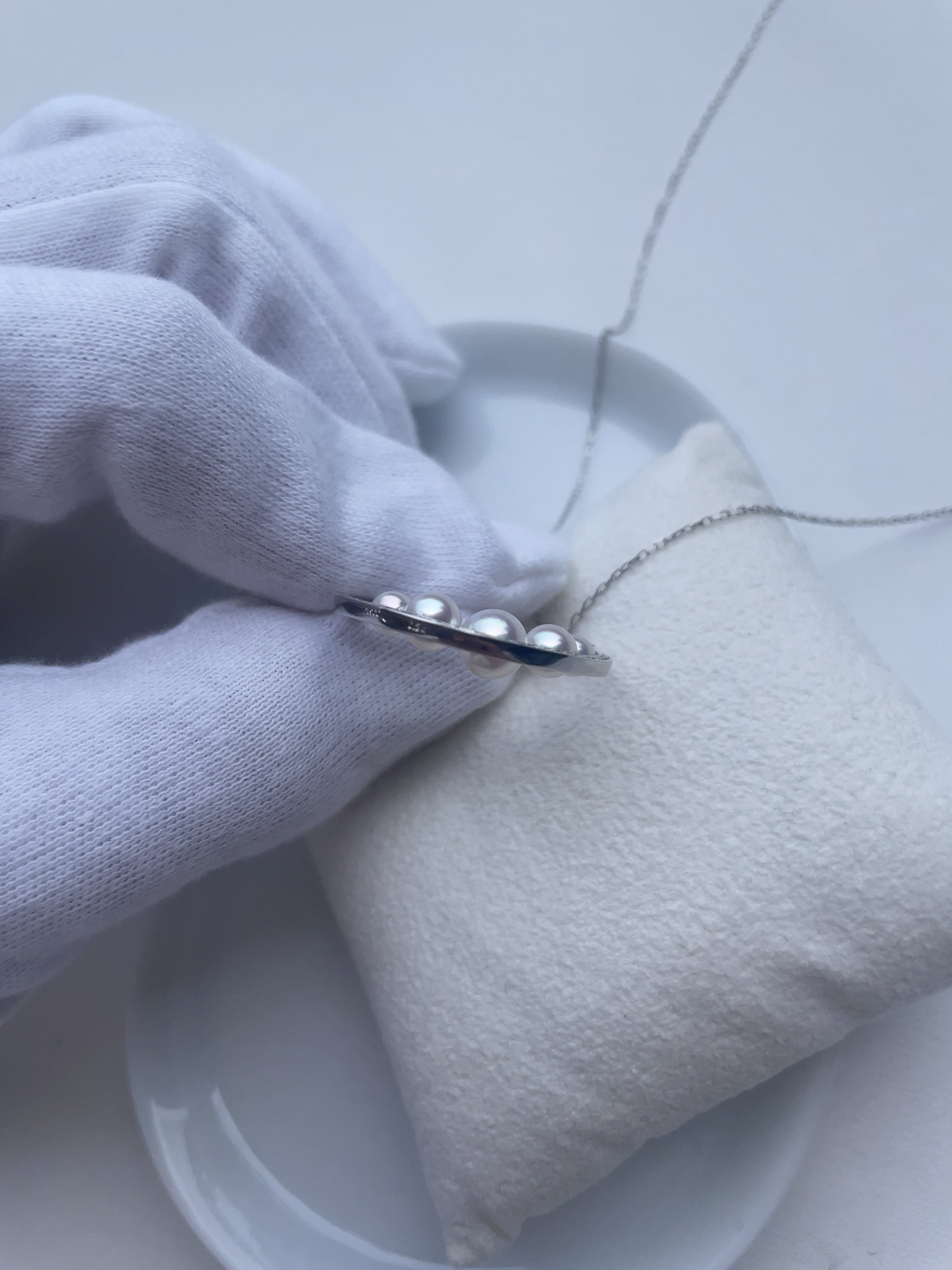 異なるサイズのアコヤ真珠がやさしい表情を添えてくれるネックレスです。