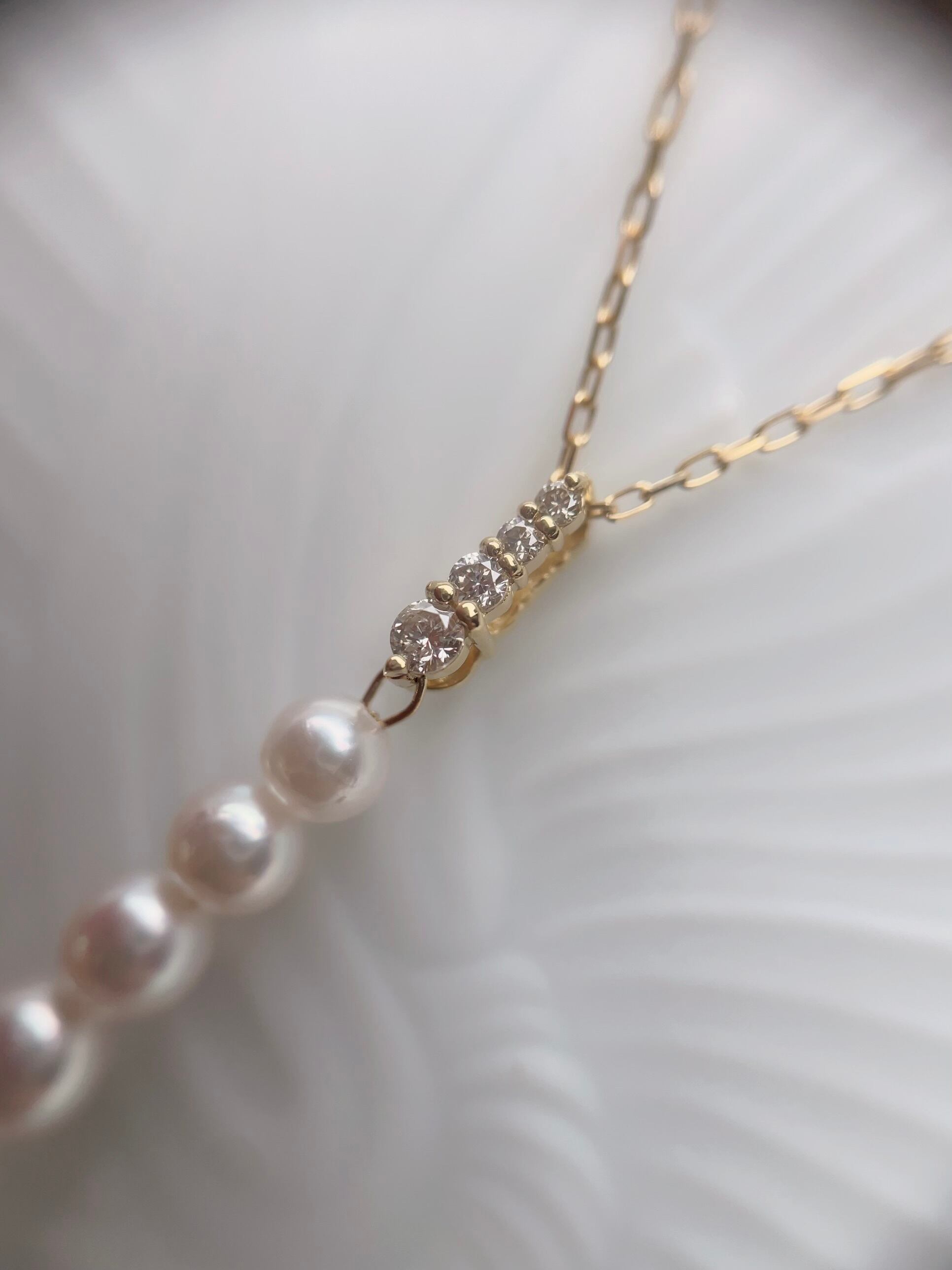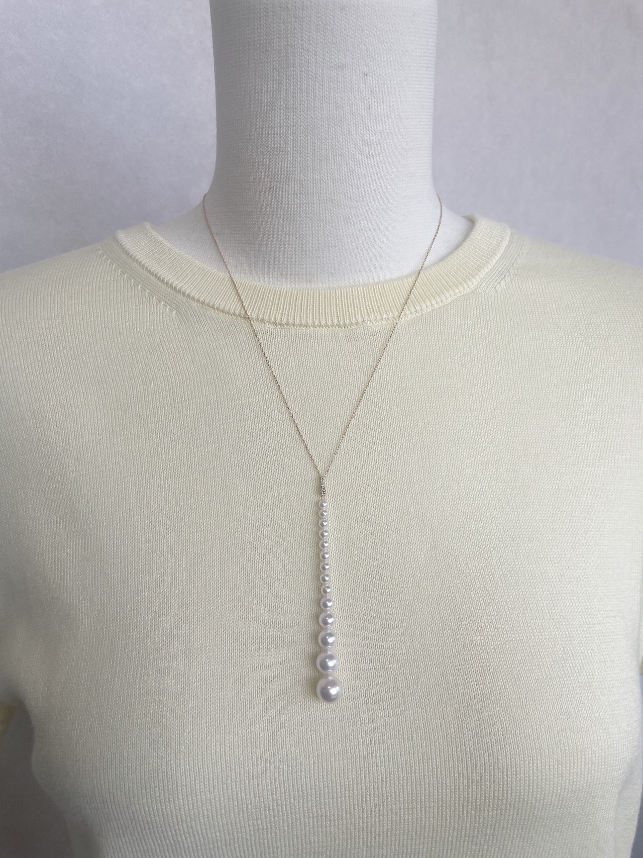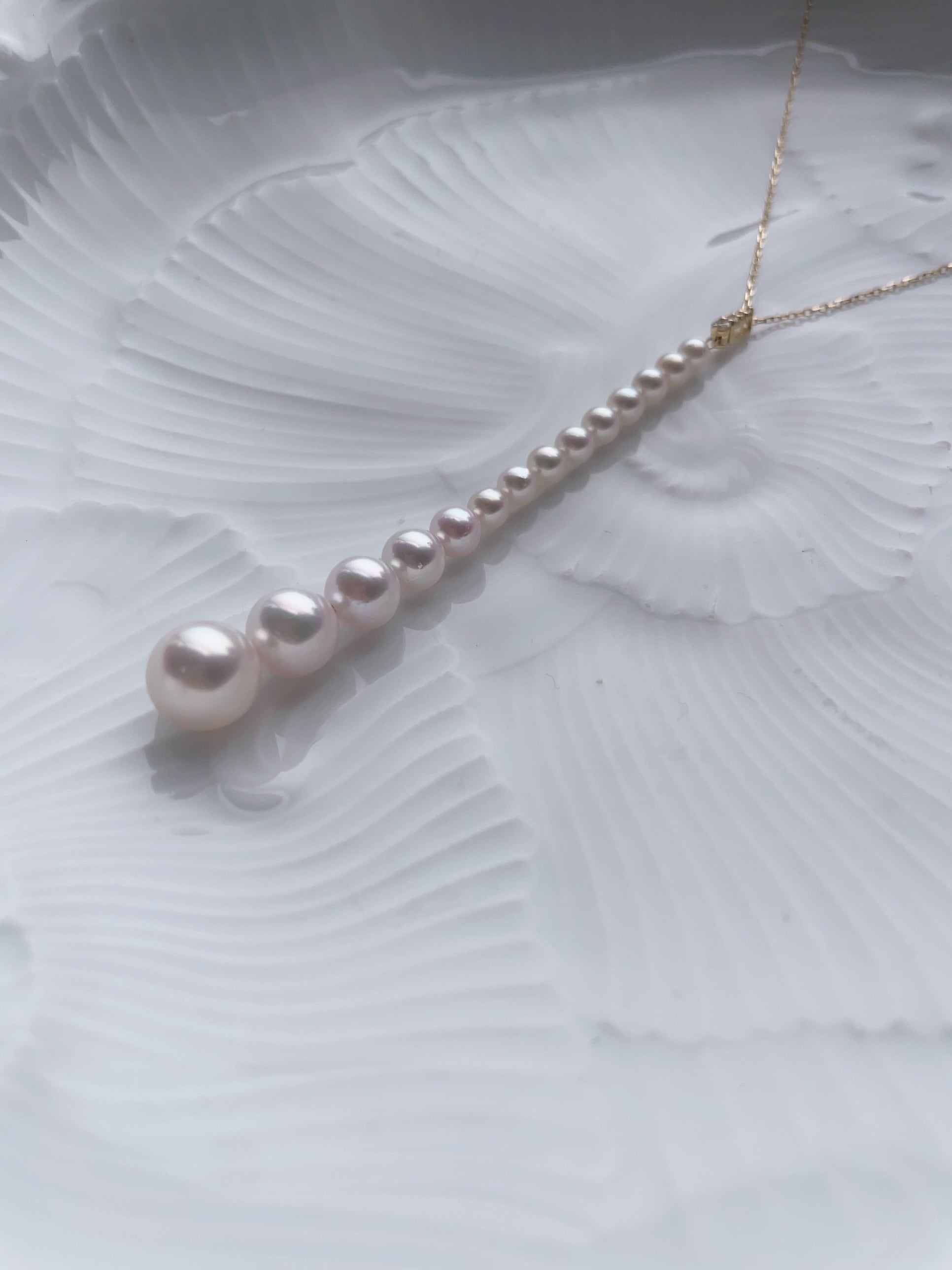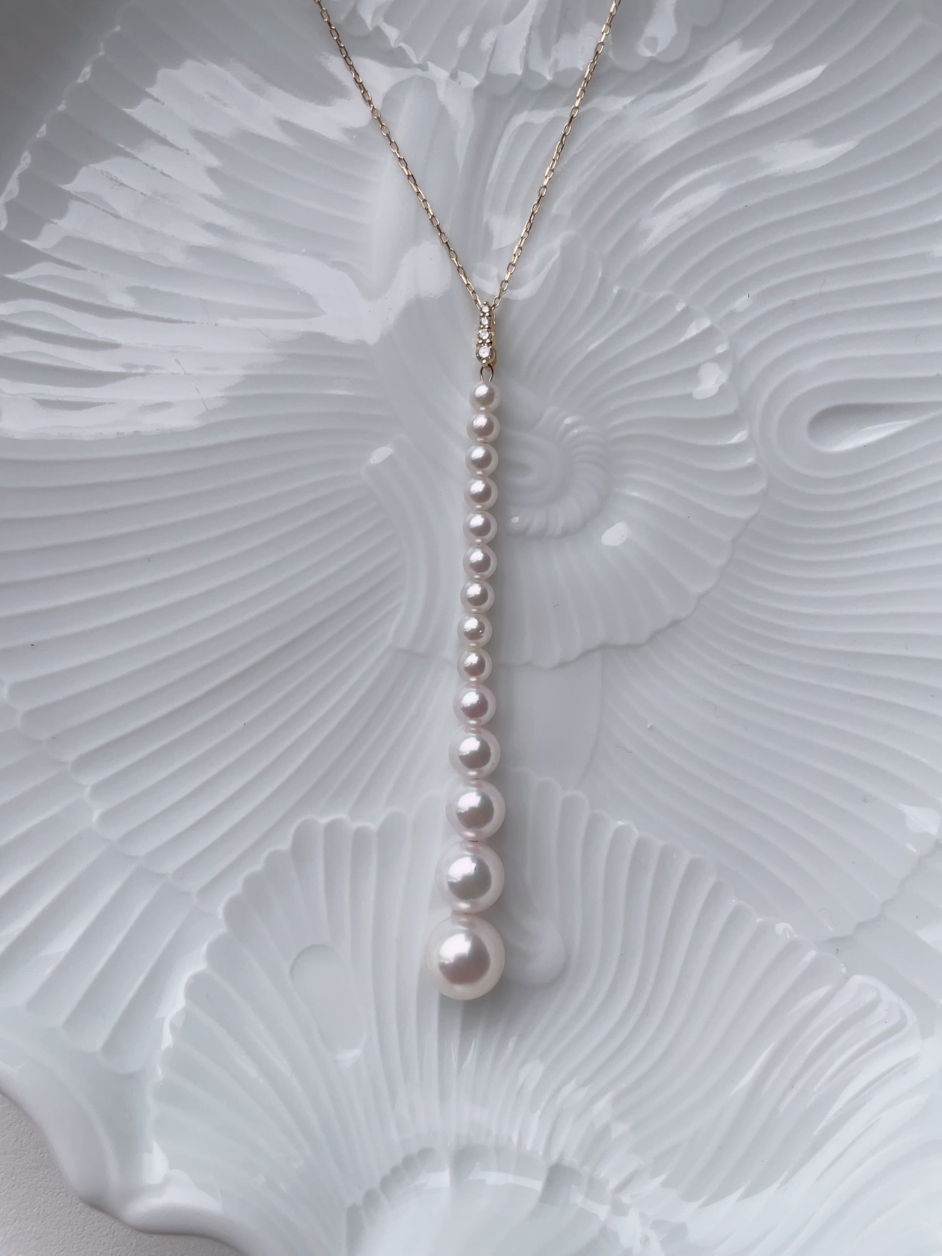 上質なアコヤ真珠をグラデーション状に並べた、エレガントなペンダントネックレス。