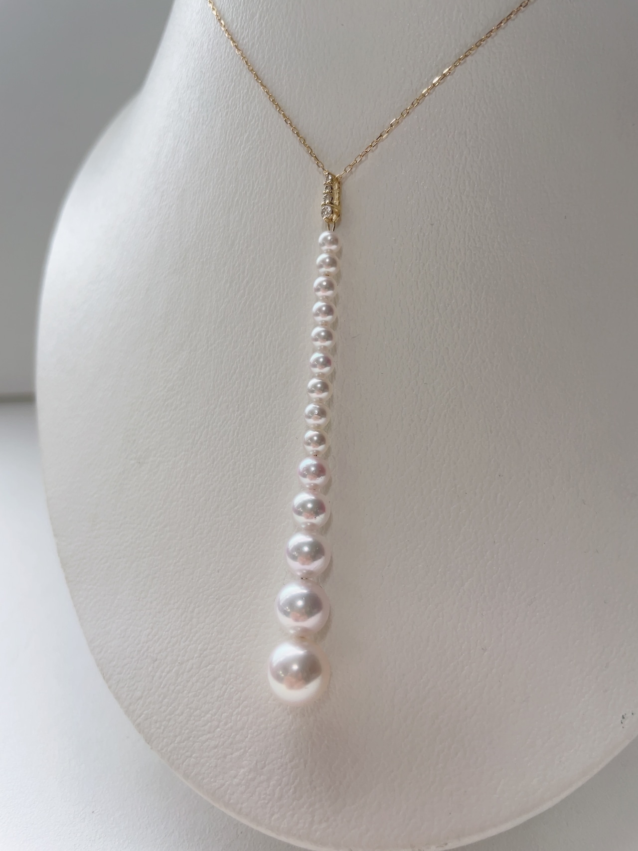 K18 アコヤ真珠 グラデーションネックレス|3.5-8.5mmの本真珠が描く立体的な輝き