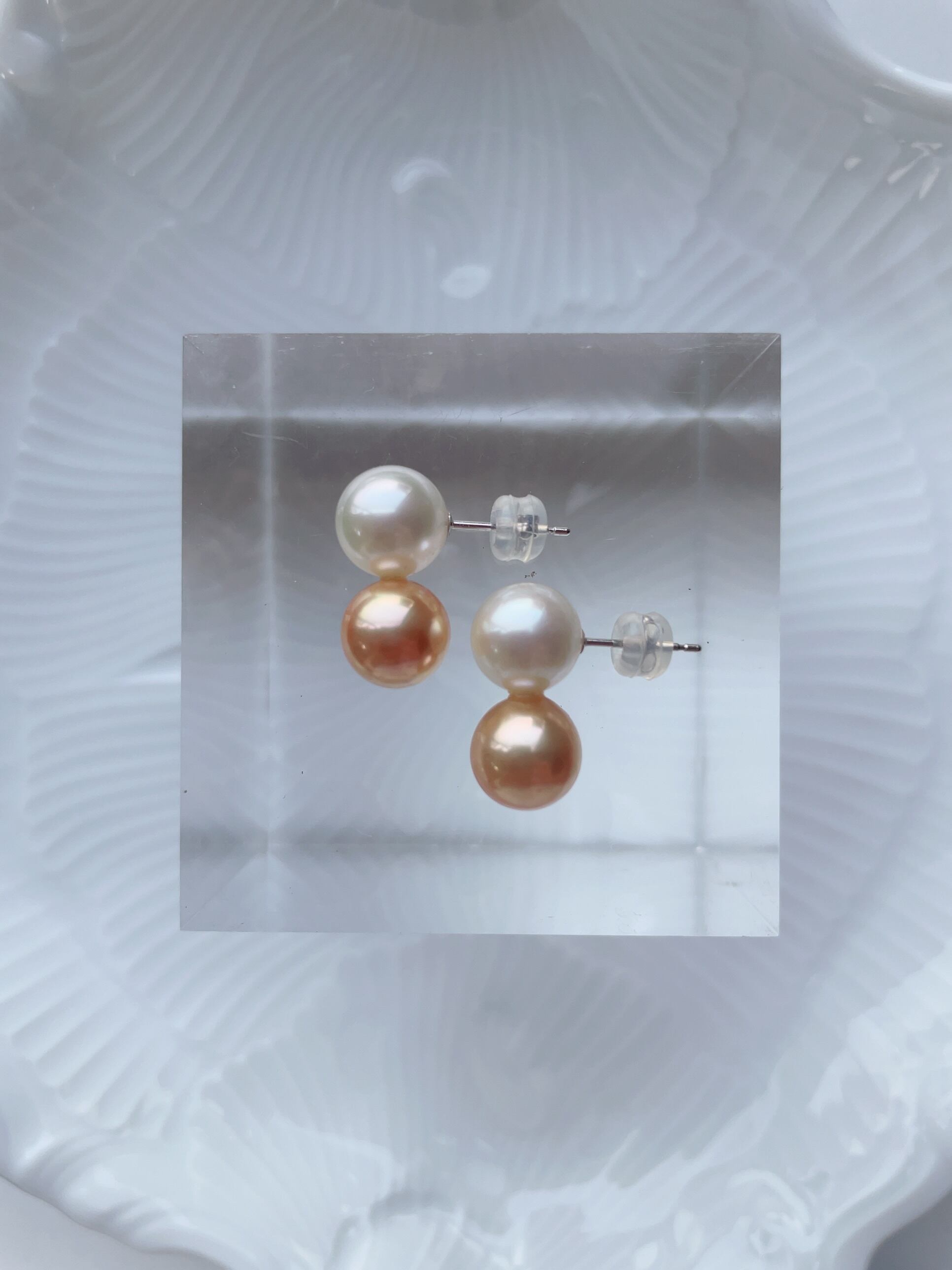K14WG アコヤ真珠 カラー 2粒ピアス