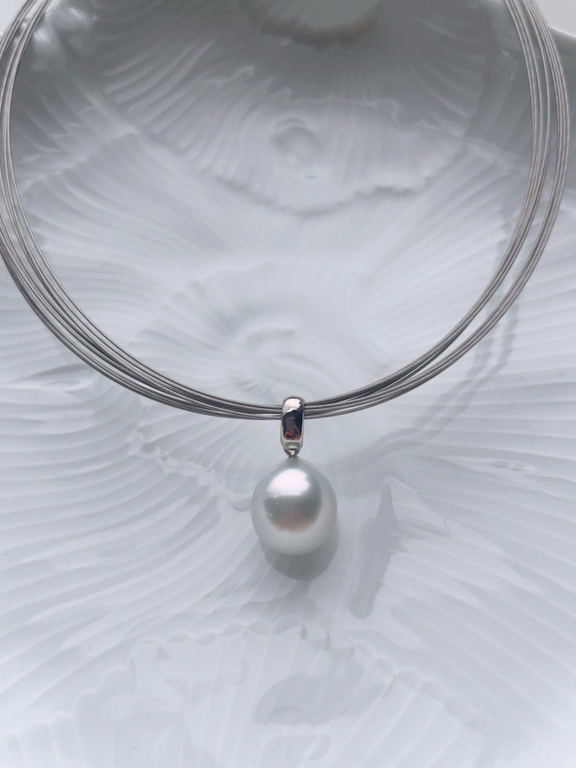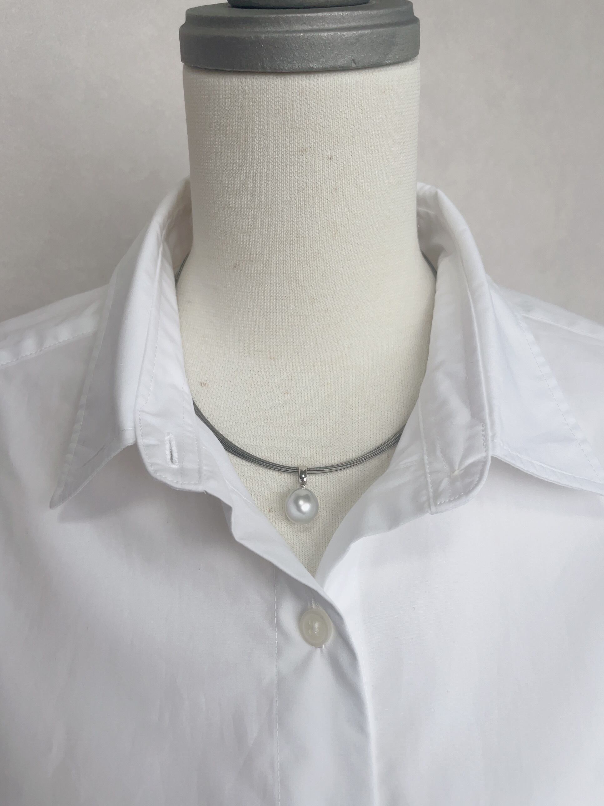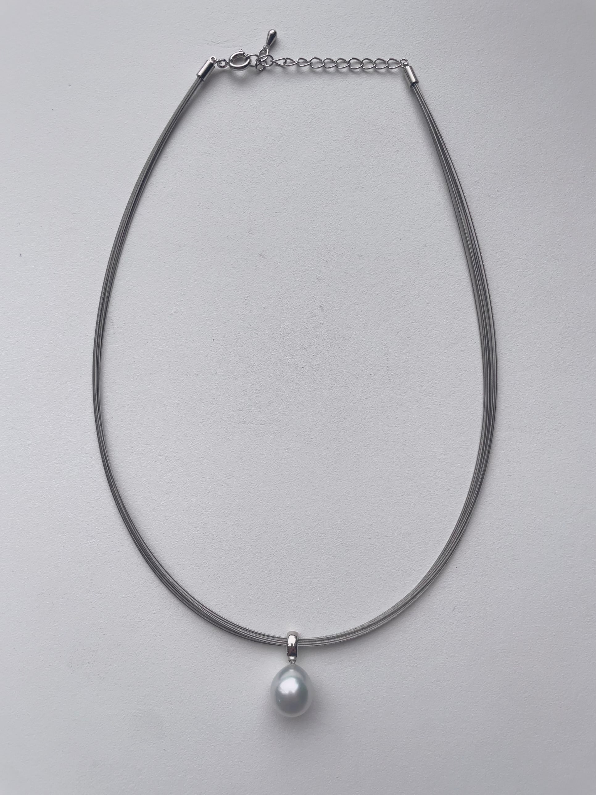 なめらかな流れのチョーカーに、美しい白蝶パールが一点、優雅に揺れるデザインです。