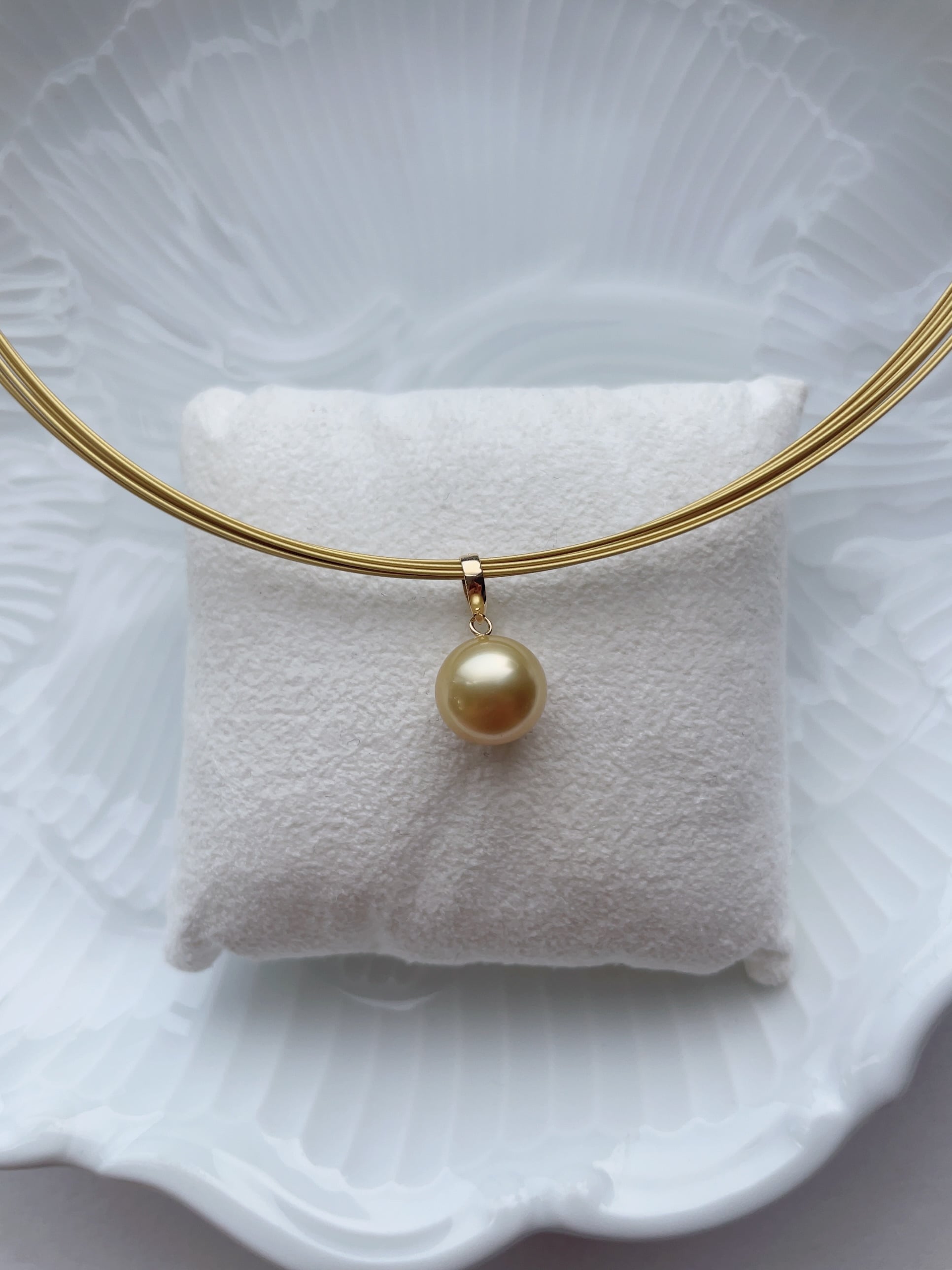 上品なゴールドカラーの白蝶真珠が秋冬の装いに華やかさとアクセントをプラスします。