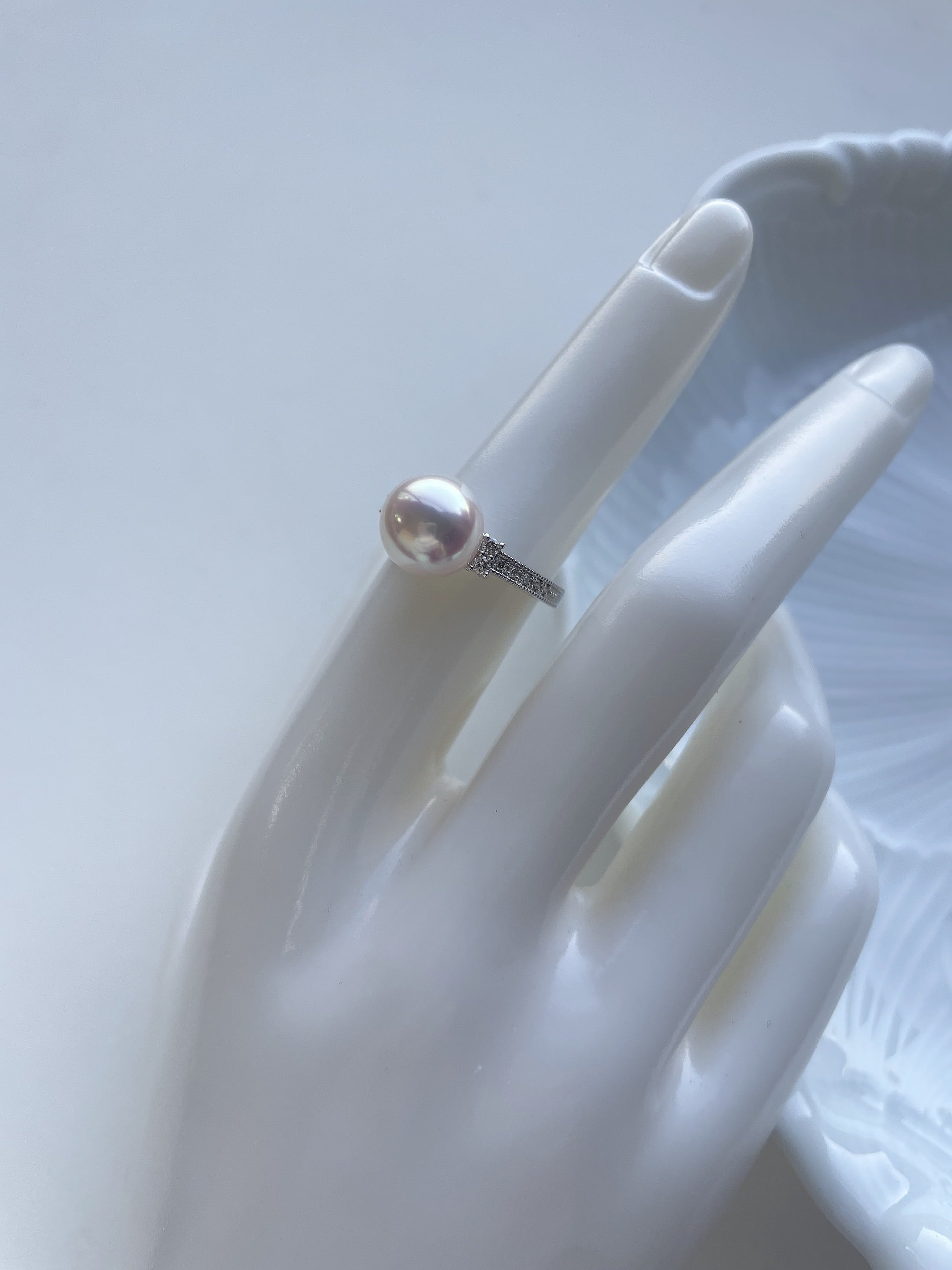 テリ重視あこや真珠9mm ダイヤリング|上質パールの存在感