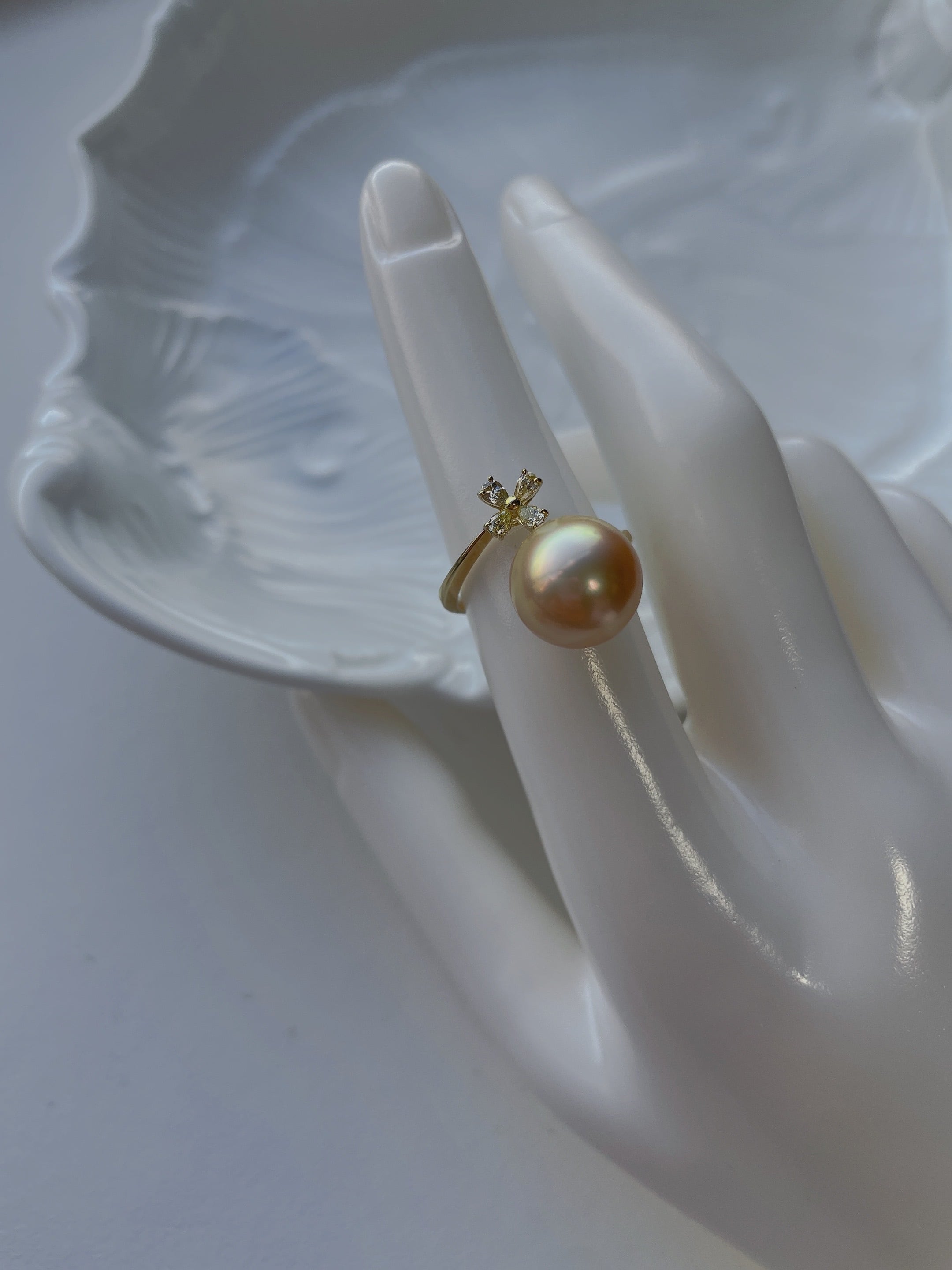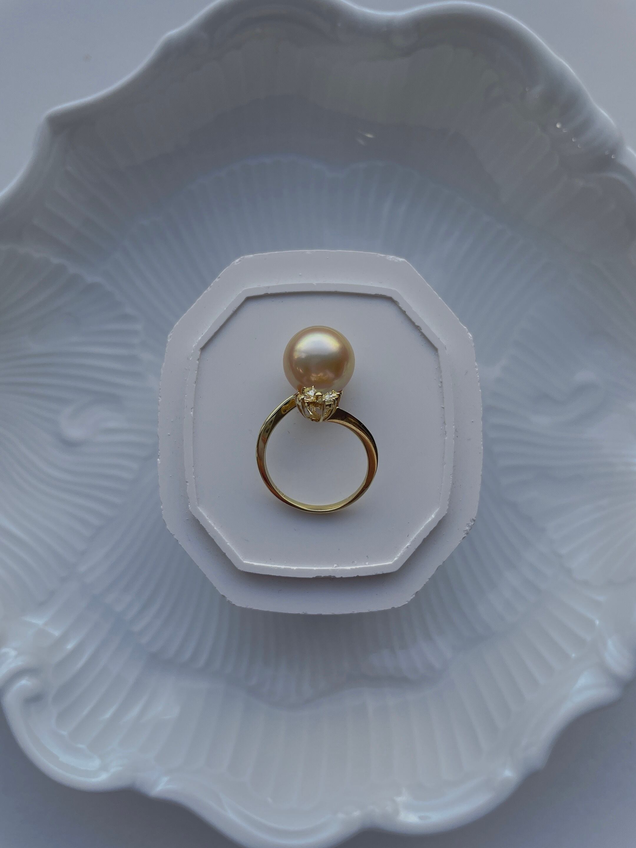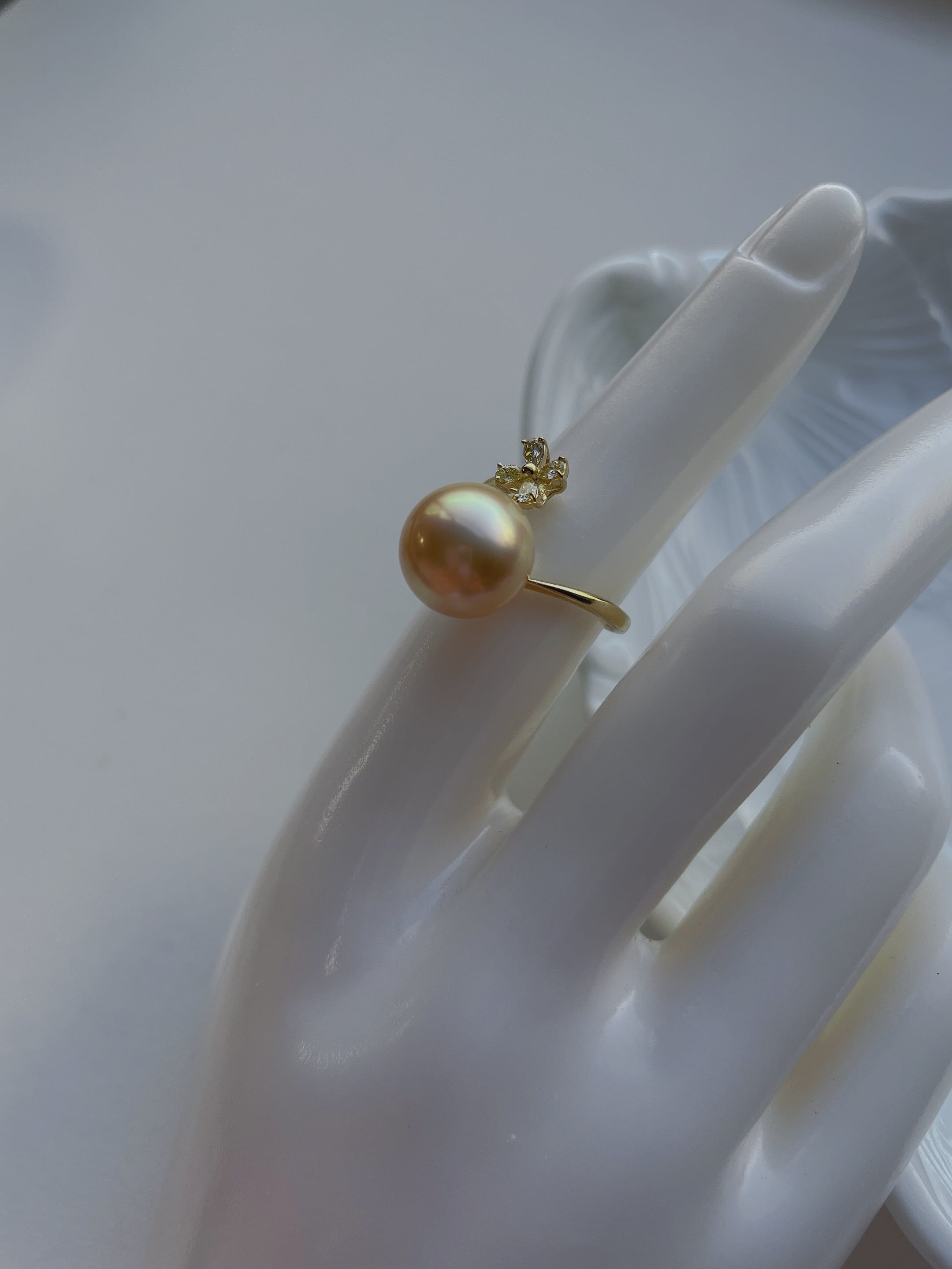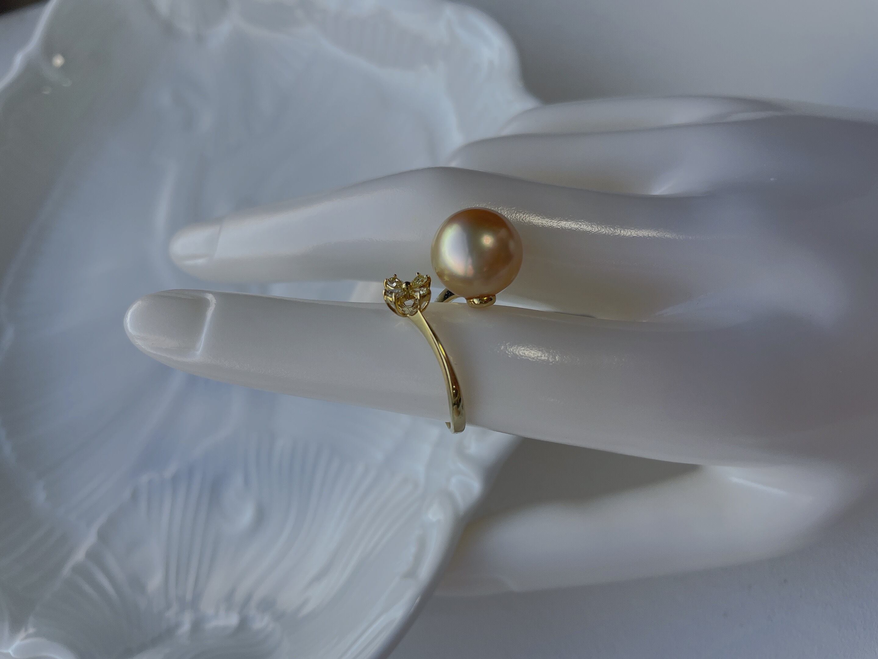 白蝶真珠11mm ダイヤモンドリング|K18 大人可愛いパール