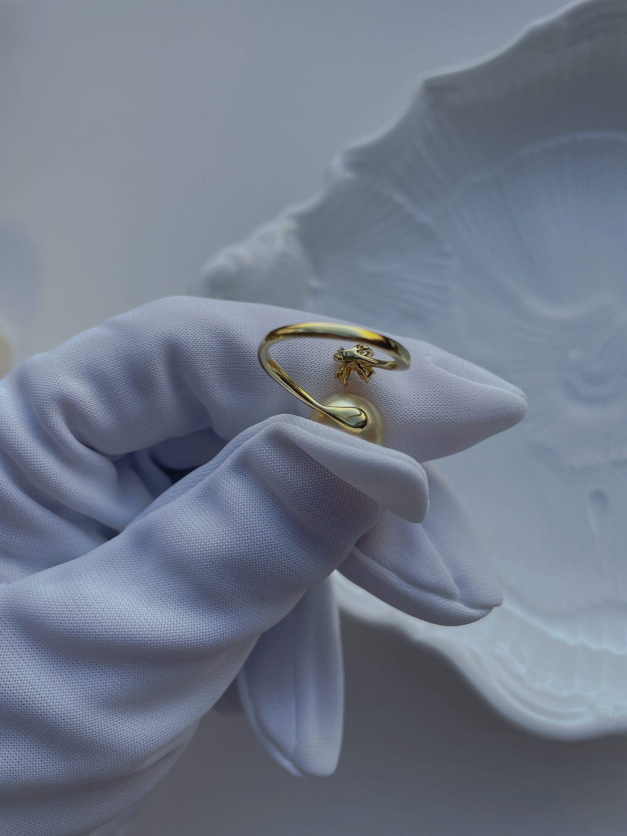 「少しだけ可愛さを足したい日」に選びたくなる、大人のための白蝶真珠リングです。